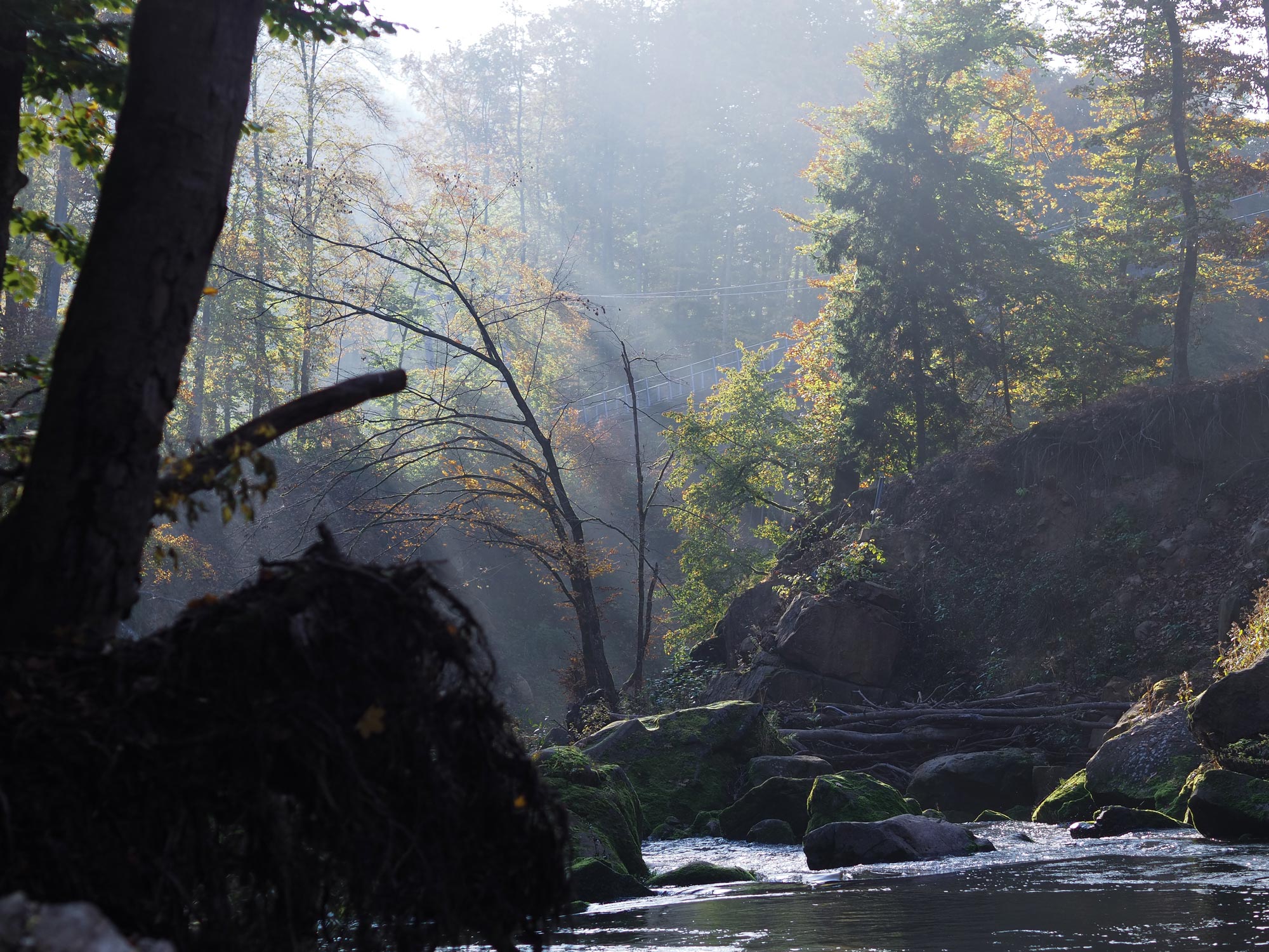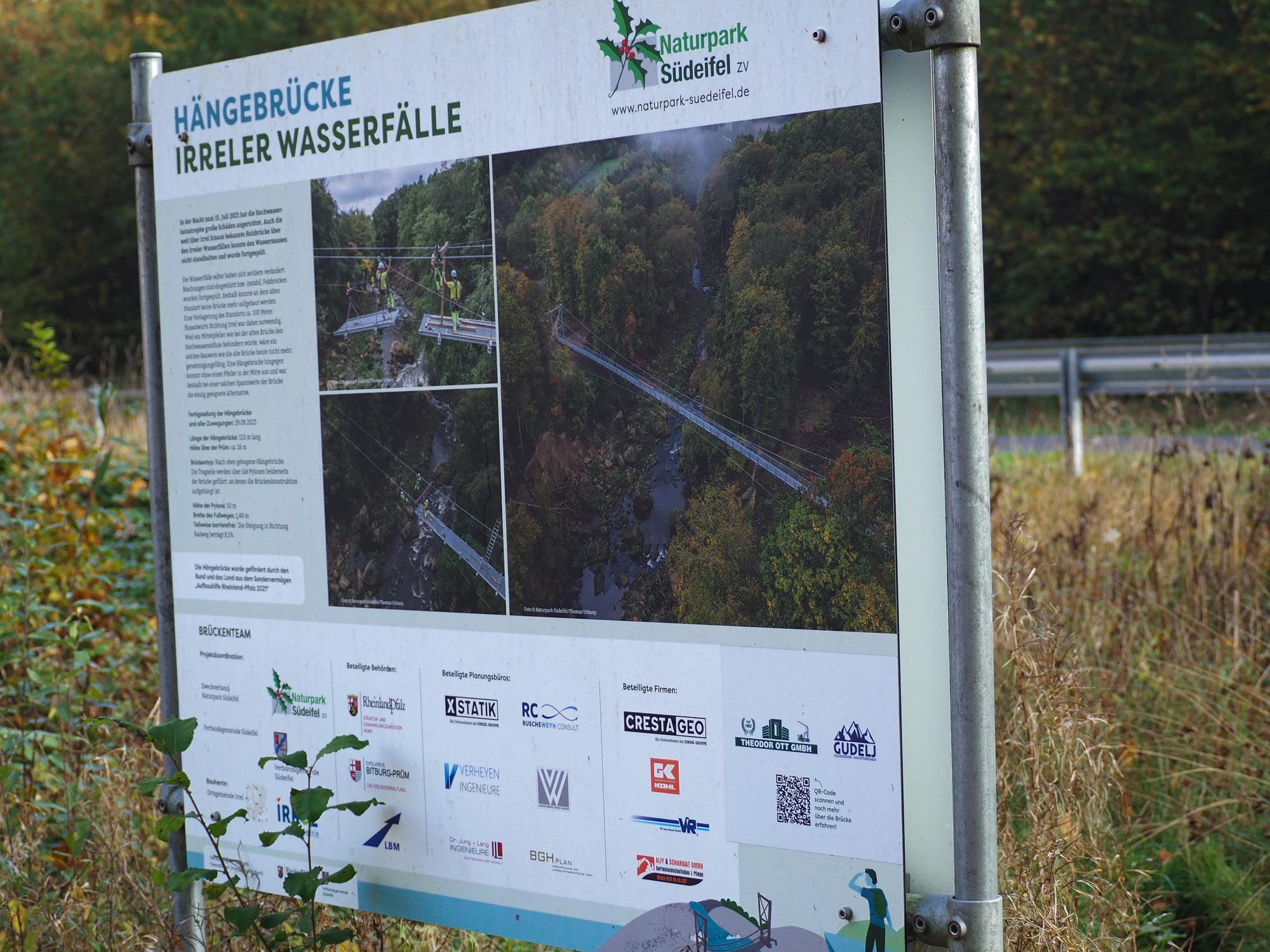 Die Irreler Wasserfälle – eigentlich Stromschnellen – sind ein beliebtes Ziel für Wanderer im Naturpark Südeifel. Nach der Flutkatastrophe im Juli 2021 wurde die alte Holzbrücke, die die Prüm überquert vollständig zerstört. Als Ersatz entstand rund 100 Meter flussabwärts eine neue Hängeseilbrücke, die mit einer Länge von 110 Metern in einer Höhe von 16 Metern nicht nur ein architektonisches Highlight darstellt, sondern auch hochwassersicher konzipiert wurde.